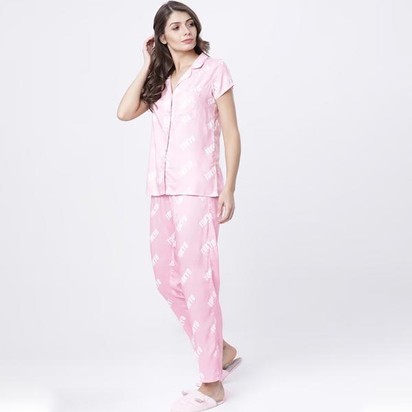 Women Pink & White Printed Night suit